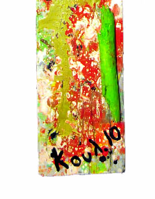 mixed media, wood, threads, plastic, enamel paint, magnifying glass and a plastic eye