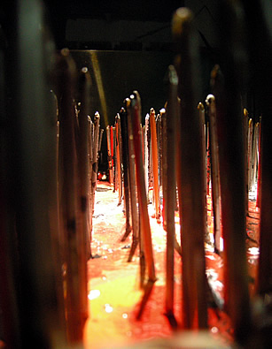 mixed media, nails, steel, motor, tiles, plastic, oil, polyurethane and wooden base