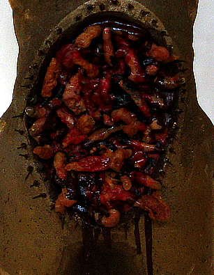mixed media, polyurethane doll, nails and enamel paint