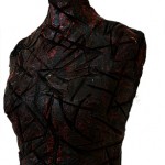 mixed media, burned polyurethane doll, oil and enamel paint